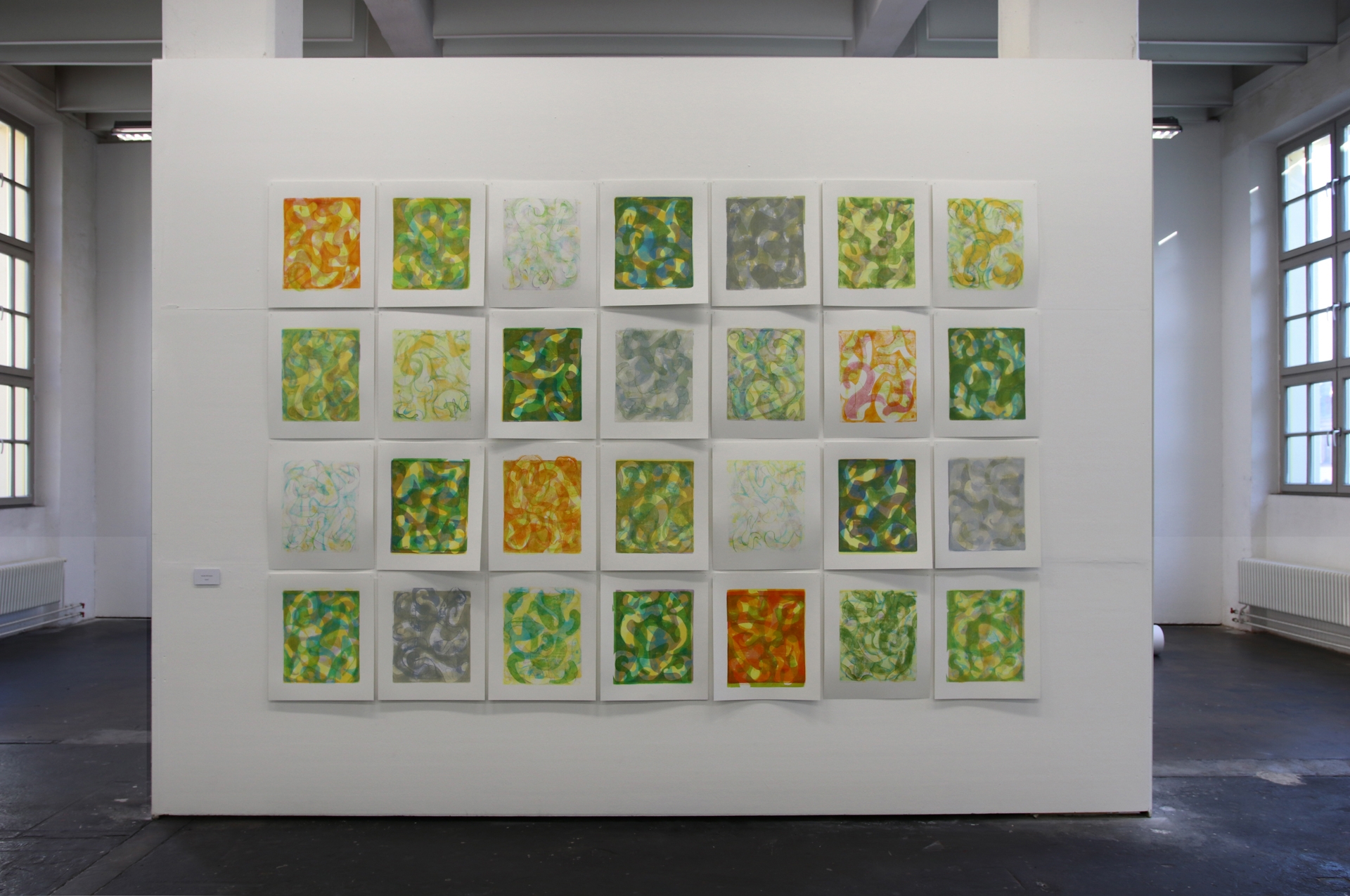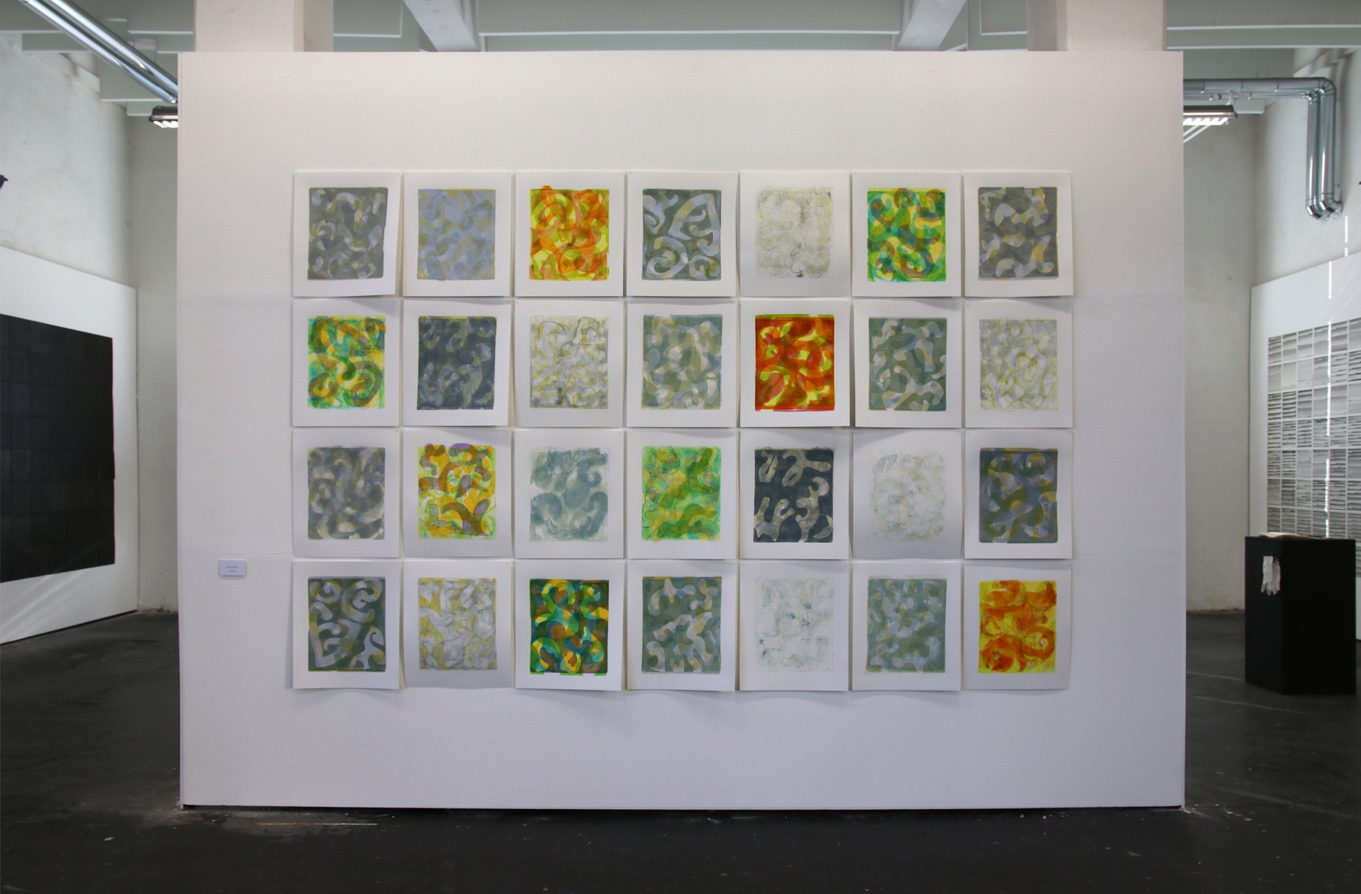 artwork Berlin fazit grid installation view kunstzone monotype painting Potsdamer Platz